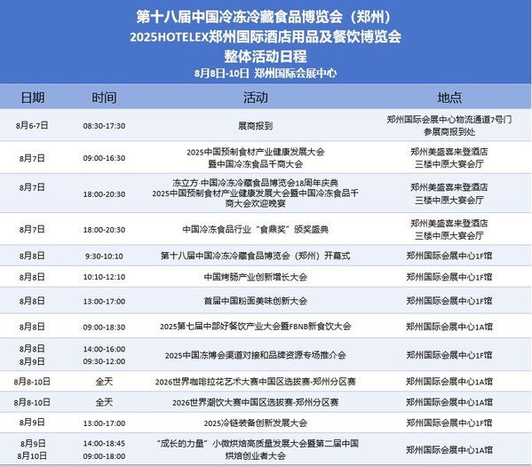1. 行业论坛:2025中国预制食材产业健康发展大会暨中国冷冻食品千商大会、2025第七届中部好餐饮产业大会暨FBNB新食饮大会、2025中国烤肠产业创新增长大会、2025首届中国粉面美味创新大会、"成长的力量"小微烘焙高质量发展大会暨第二届中国烘焙创业者大会探讨产业创新升级新路径;